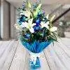 Try this Bunch of Orchids & Lilies. This Bunch of Orchids & Lilies contains 5 White Beautiful Lilies and 5 Purple Orchids wrapped in blue beautiful Paper wrapping with white Ribbon. This Bouquet looking very special when present it to anyone.