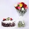 Colourful Roses & Cake Combo Contains: