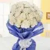 This White in Blue Carnations contains 15 White Carnations Wrapped in a Blue Paper and with White Ribbon. You have to try this new trend to express your feelings to your loved ones. Carnations is also useful in many type of ills, from acting as stimulant to an antispasmodic. You can start the new trend with ordering this beautiful Bouquet. The fragrance of these carnations will always make anyone feel happy and stress less at any situations. Order this now for your loved ones and make your impression good at front of them, after this you can feel more attention then past. So order this now.